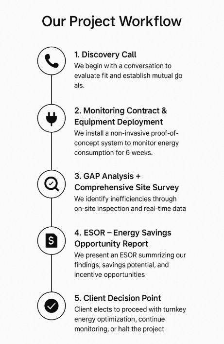 If aligned, we offer a low-commitment monitoring agreement that allows us to install a proof-of-concept (POC) energy monitoring system at your site.